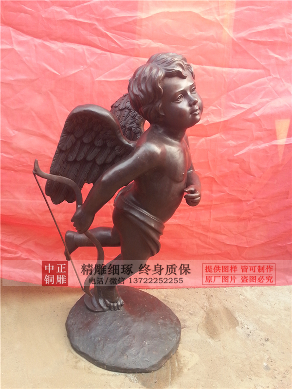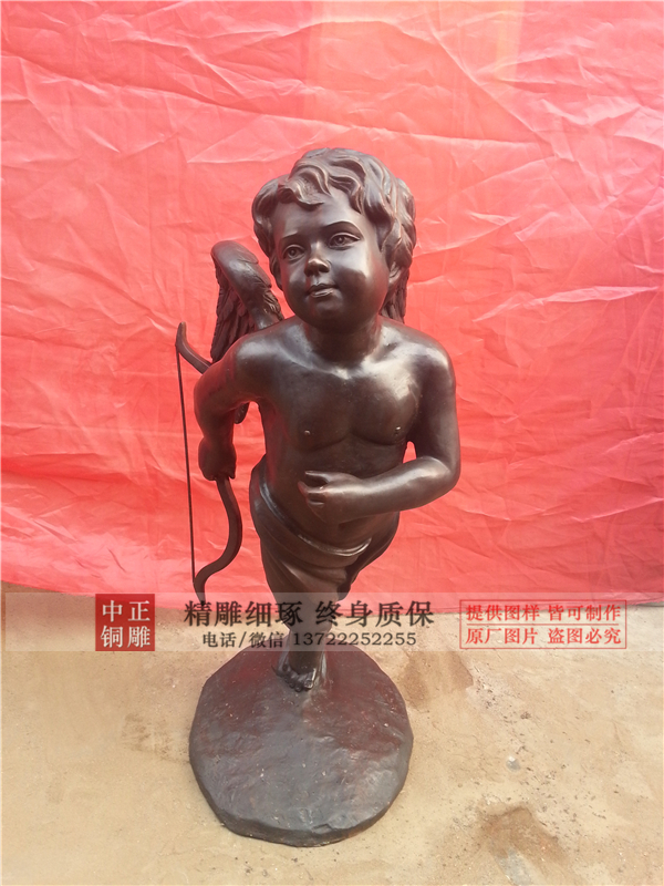 在古希臘神話中,丘比特是神話中非常可愛調皮的小天使,整天背著愛神之箭促成姻緣,因此銅雕廠家塑造的丘比特銅雕塑也多是小天使的造型。