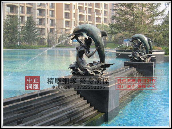 1、多只配合向中間噴水的設計,雕塑個頭不可太大,否則會顯得很蠢笨。