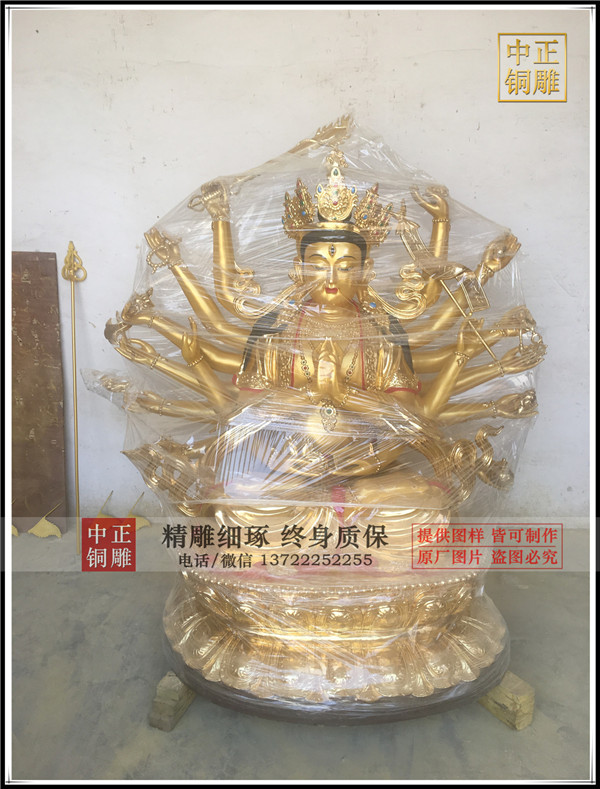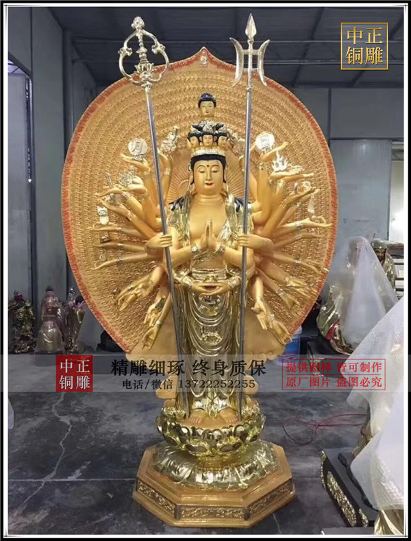 觀音的化身有很多,而千手觀音就是其中之一,而且還受到人們的虔誠供奉,但不知道大家是否了解千手觀音銅佛像的來歷呢,“千”為無量及圓滿之義,以“千手”表示大慈悲的無量廣大,以“千眼”代表智慧的圓滿無礙。千手千眼觀世音能利益安樂一切眾生,隨眾生之機。