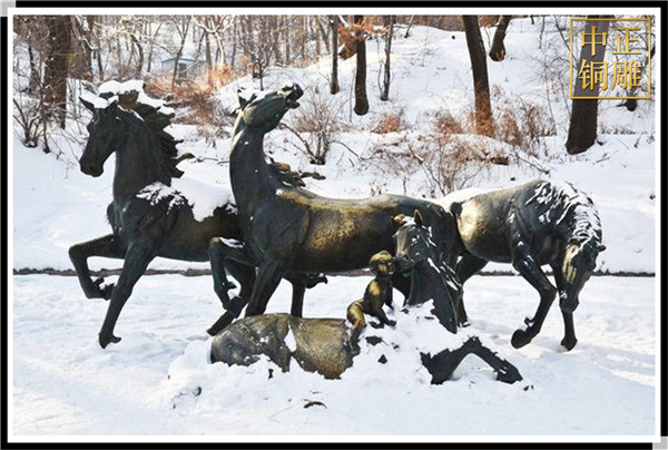 而雕刻出的馬,雄壯無比,力大無窮,追月逐日,披星跨斗,乘風御雨,不舍晝夜。這正是中華民族戰(zhàn)天斗地,征服自然的生動寫照,是炎黃子孫克服困難,永遠前進,是中國人民不畏艱險,樂觀向上的生命意義的反映。所以銅馬一般擺放在企業(yè)門口既有拼搏向上的精神,也有招賢納才的寓意!
