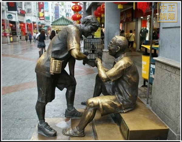 人物雕塑是一種能夠反映出社會生活 表達藝術(shù)的形式,人物雕塑起源于工藝美術(shù),因此大部分的人物銅雕都具有非常強的裝飾性和實用性,隨著人們的生活水平提高和觀念的轉(zhuǎn)變,中國也有很多城市開始建造屬于自己的情景人物雕塑。中正銅雕-逗鳥人物銅雕塑、逗鳥人物銅雕塑價格、逗鳥人物銅雕塑廠家,我公司實行現(xiàn)代化企業(yè)管理,成功導(dǎo)入TPS生產(chǎn)管理系統(tǒng),形成集塑制泥塑模型、泥稿后翻制模具、翻制石膏模型、工藝師加工制作、營銷為一體化作業(yè)的生產(chǎn)線,加上先進的銅雕加工設(shè)備,優(yōu)秀的美術(shù)設(shè)計師,雕刻經(jīng)驗豐富的制作人員, 造型精美,精雕細琢,深受客戶的好評。