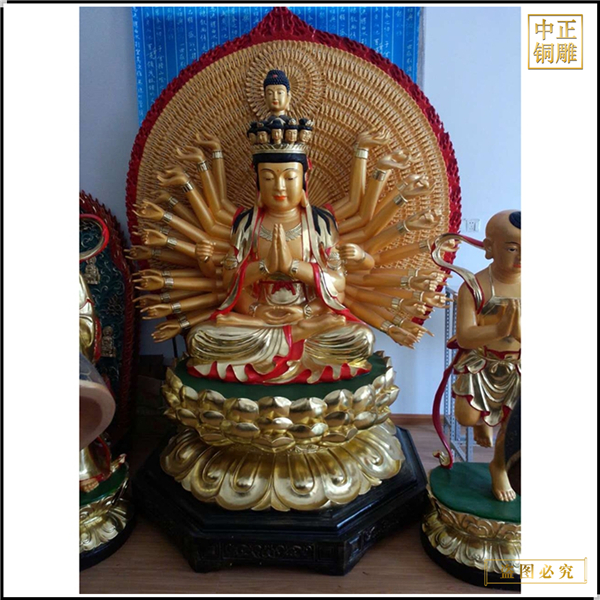 中正銅雕-千手觀音菩薩佛像廠、千手觀音菩薩佛像廠定制、千手觀音菩薩佛像廠報價,我公司集科研、開發(fā)設計、普通鑄造、一次性整體澆鑄、精密鑄造于一體。本公司技術力量雄厚,設備,不但重視中國青銅器原有的藝術風格,還繼承了文物原有的藝術品味,在繼承和發(fā)揚古老文化的同時,更深一步為新老客戶定身量制各種銅制、鐵制工藝品等產(chǎn)品,曾多次受到寺廟長老和美術學院教授的好評。