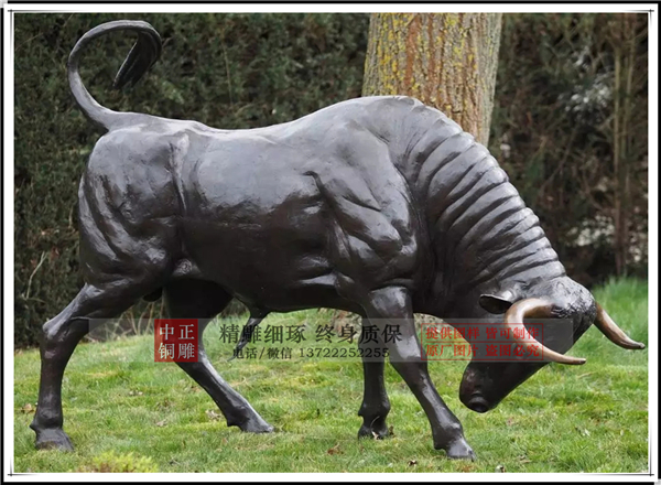 華爾街銅牛雕塑高3.4米,長4.9米,重3.2噸。它的由來也充滿了戲劇性。華爾街銅牛的設計者是來自于意大利的藝術家—阿圖羅·迪·莫迪卡。莫迪卡一直想做一件作品一鳴驚人,好出人頭地。1987年,美國股市遭遇崩盤危機之后,他就有感而發,自籌資金,用兩年時間創作了這頭銅牛。中正銅雕-銅牛價格,加工銅牛價格,定做銅牛價格,唐縣中正銅雕工藝品廠是鑄銅雕塑的廠家。擁有設計師和雕塑團隊,引進的鑄造技術,開發出一系列的藝術性銅制工藝品。