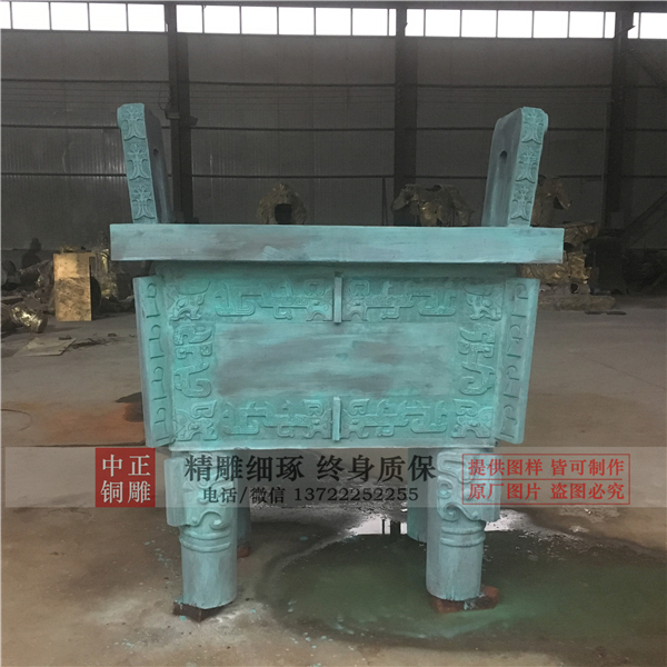 眾所周知,相比于純銅,青銅的硬度非常高(青銅是銅和錫或鉛或砷等元素的合金),古人在制作一些小而薄的青銅器時,可以采用錘揲、鏨刻的方法來成型并增加紋飾,但是如果想要制作出器型大、器壁厚的銅器,就無法錘揲成型,也無法直接在器身上直接雕刻花紋了,必須通過鑄造的方法來同時完成成型和裝飾。中正銅雕-定制青銅寶鼎,加工定制青銅寶鼎,批發(fā)定制青銅寶鼎,我廠成立于2014年.我公司是唐縣銅雕的知名企業(yè),主要以各種大型銅雕鑄造加工于一體.主要產(chǎn)品有,寺廟佛像、香爐、銅鐘、城市雕塑、動物雕塑、偉人雕塑、西方人物、銅浮雕等,品種齊全,價格合理。